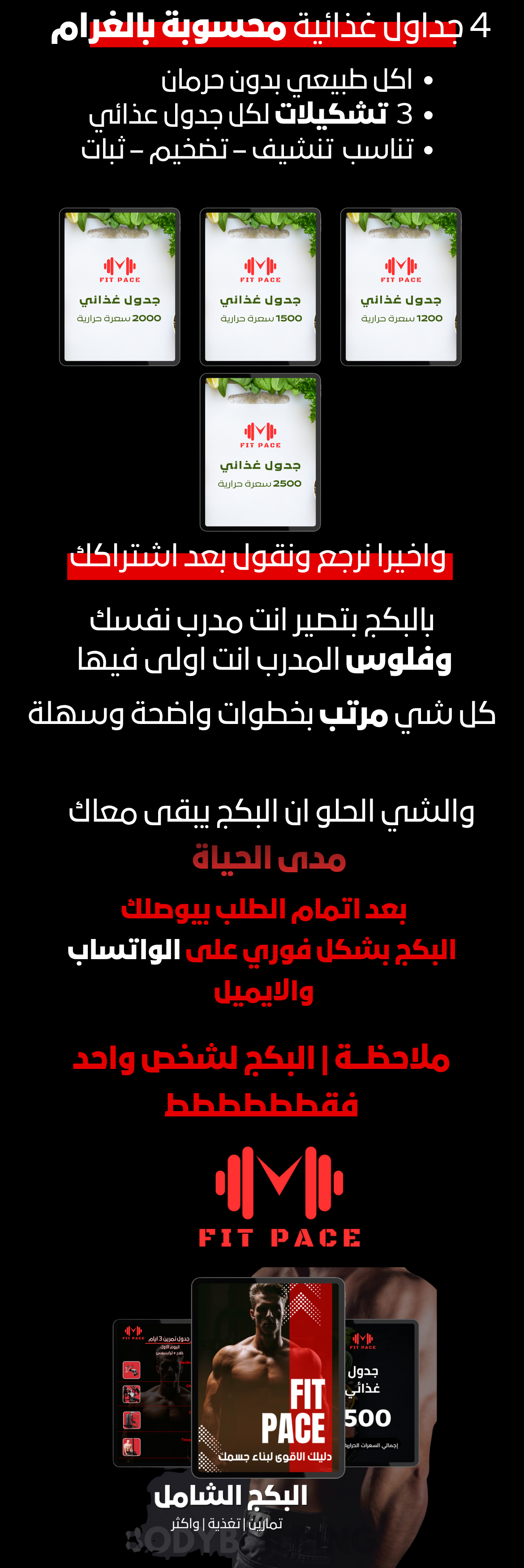 البكج الشامل | جداول تمارين | وتغذية| رجالي