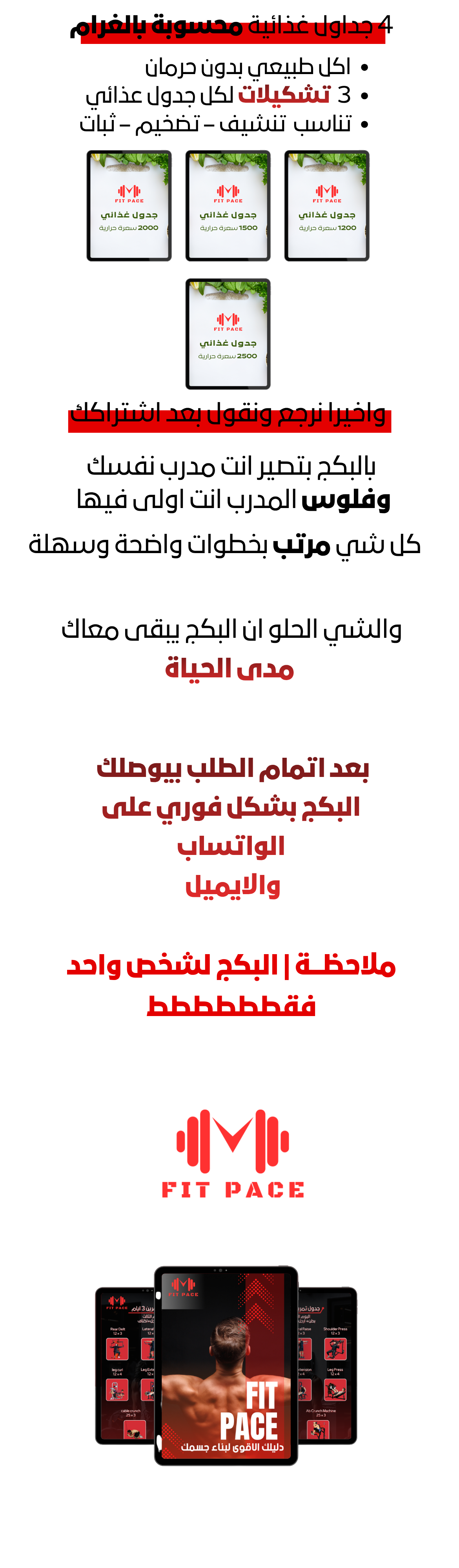 البكج الشامل | جداول تمارين | وتغذية| رجالي