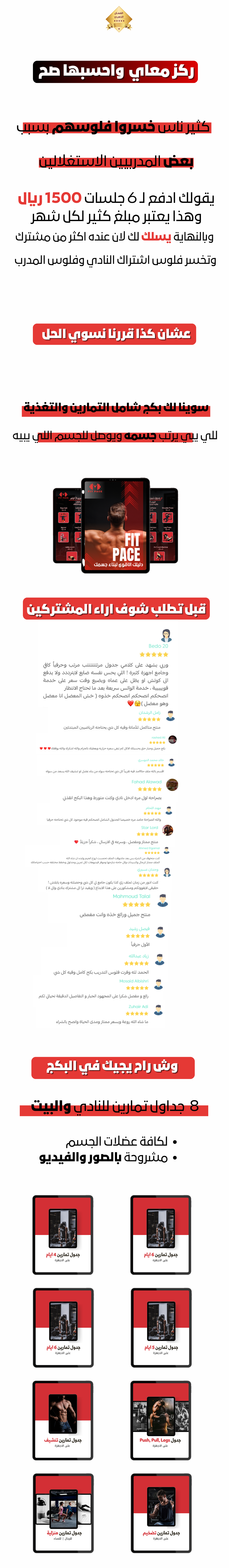 فلوس التدريب أنت أولى فيها!.. لأنك الحين تقدر تصير مدرب نفسك بنفسك وتتحكم برحلتك الرياضية بالطريقة اللي تناسبك مع جدول تمارين شامل!.